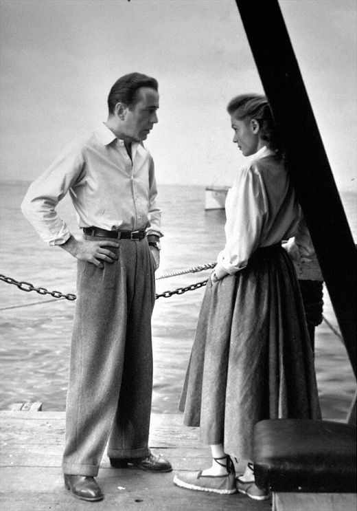 Humphrey Bogart and Lauren Bacall, 1948, production still from Key Largo via vintagesonia