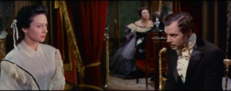 Playing the film a second time, (with Susan White’s dry, droning, academic commentary only partially entering my consciousness,) I freed myself from reading subtitles and was allowed greater freedom to simply watch the film unfold visually. Lola Montes was the first and last time Ophuls used color and widescreen; but he certainly used it well. The color palette is dazzling and the way he uses/navigates the 2.55 CinemaScope frame with his moving camera, then dividing and re-framing with vertical, horizontal and slanted lines or matting off the screen to focus attention, create separate spaces, define relationships, etc. is a wonder to behold when you become aware of it. Ophuls complicated mise-en-scene is no accident.